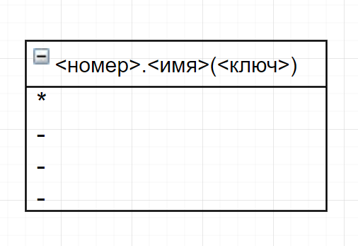 имя сущности. Нужно стремится, чтобы это было существительное... но это не всегда так.Ключевой литерал- для удобства работы, например, чтобы не расписывать полностью имя сущности, которое мы выделили.Атрибуты.Если это привилегированный идентификатор, атрибут который указывающий, мы его помечаем звездочкой. Все остальные атрибуты мы просто перечисляем.