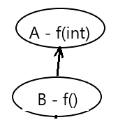 Рассмотрим нижеприведенную схему. В классе А есть перегруженный метод f: f() и f(int). В производном классе есть всего один метод f().
